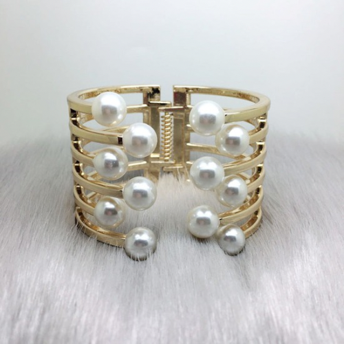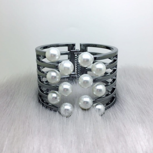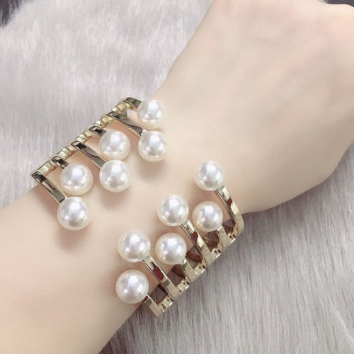 Das Personality Inlaid Pearl Bracelet von LOÉAR ist ein auffälliges Statement-Piece mit eingefassten Perlen und breitem Design.
